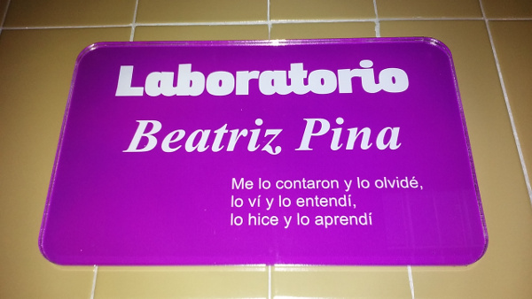 Por eso, desde el colegio y desde la comunidad educativa que todos formamos se decidió poner una placa con su nombre al laboratorio, a su laboratorio...