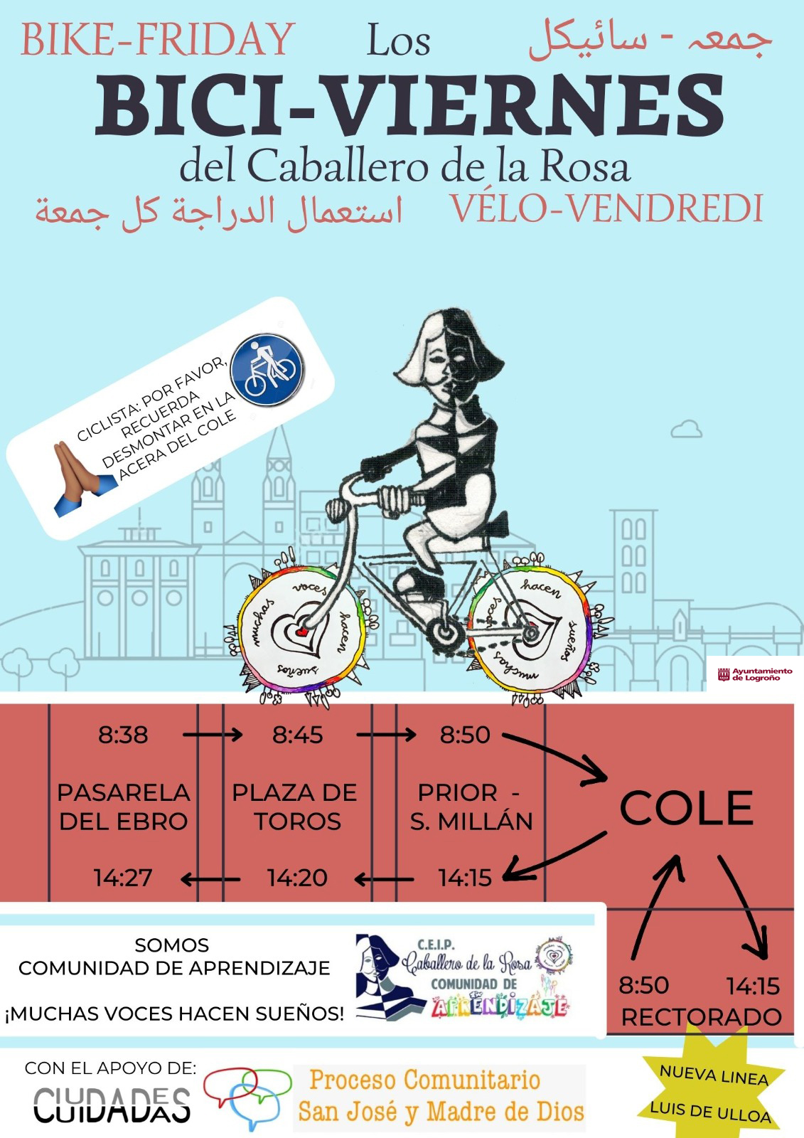Gran noticia para esta Comunidad de Aprendizaje , desde esta semana el PEDIBUS y BICIVIERNES se pone en marcha. Alegría tremenda poder ver todas las mañanas los petos de las familias y alumnos que participan en el pedibus y el viernes los de los participantes en el biciviernes. Animaros a participar. No hay mejor manera para empezar el día, venir al colegio acompañado de compañeros y familiares haciendo ejercicio físico.